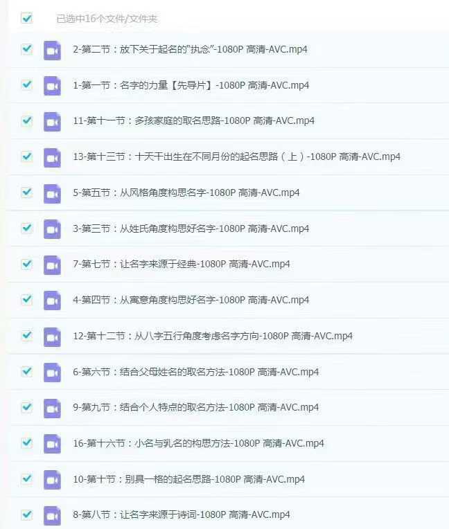 姓名课程资料大合集,详情请看截图目录