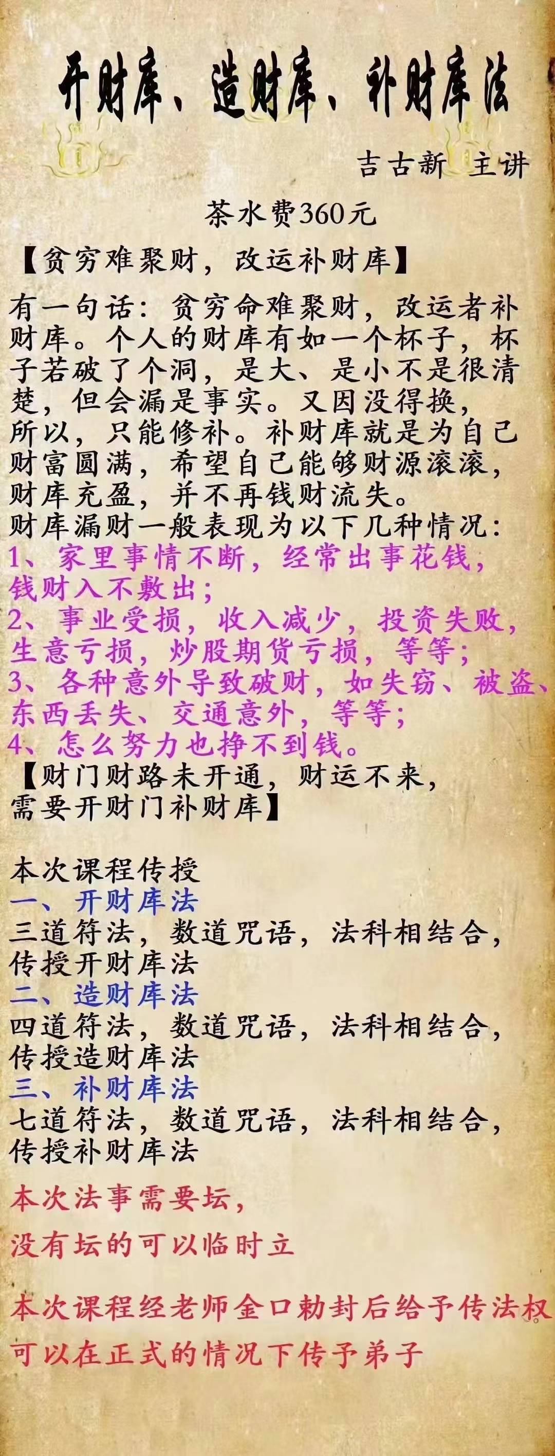 吉古新主讲《开财库、造财库,补财库法》录屏+文档 360元
