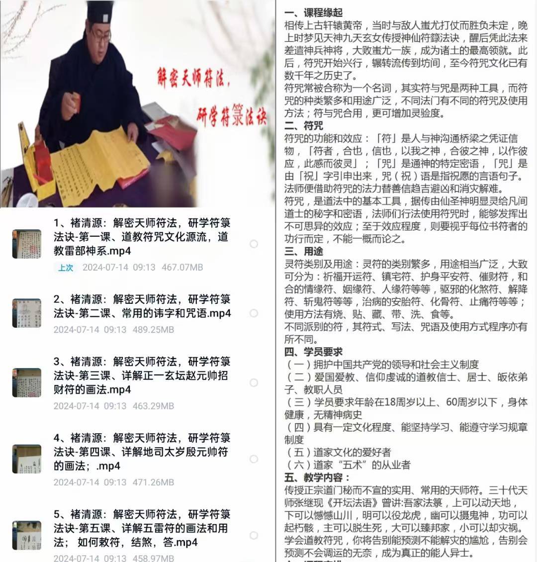 褚清源道长《解密天师符法,研学符箓法诀》5集视频课