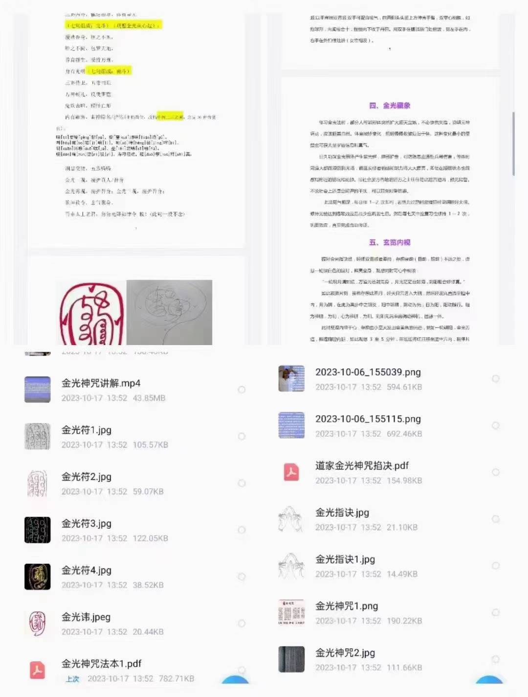 金光神咒修持法,一个视频+两份文档+多张图片