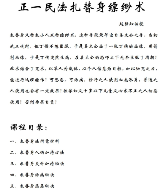 静知 扎替身缥缈术 扎替身又称扎小人或缥缈术