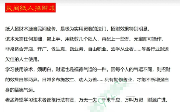 民间纸人招财术,该术无需任何基础,易上手