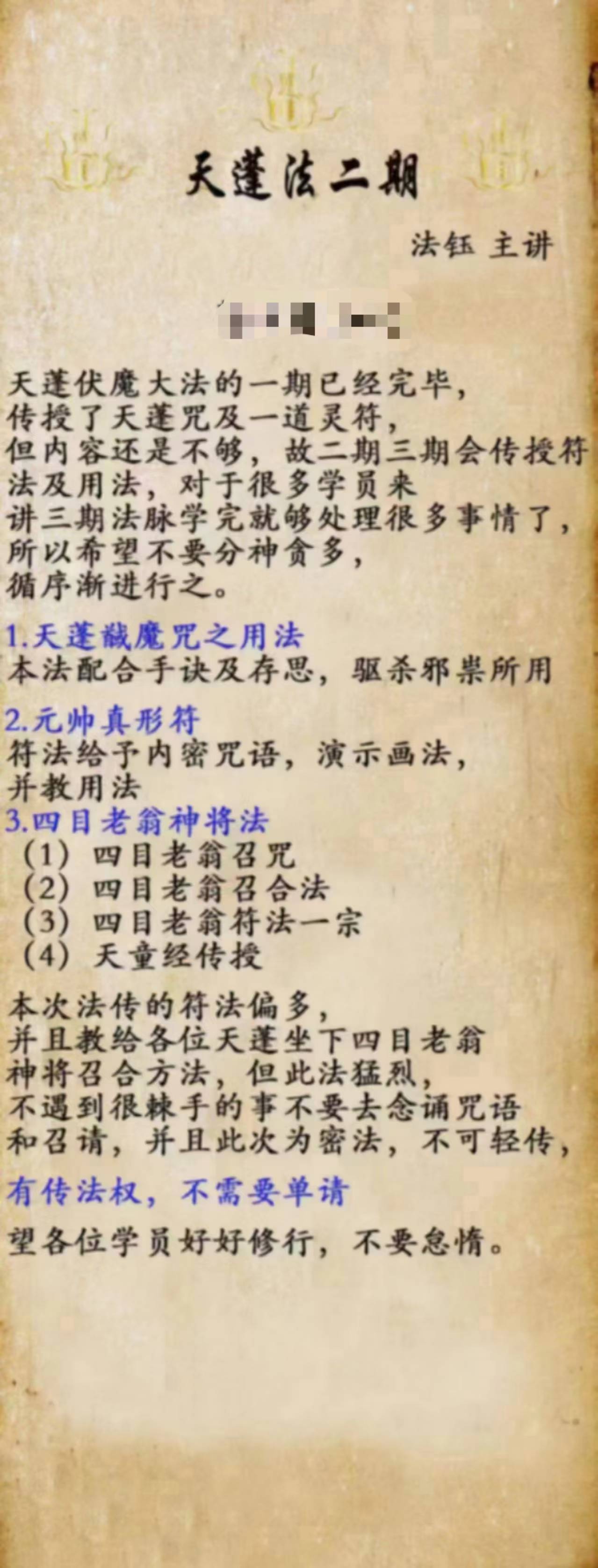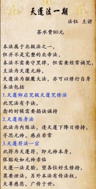 天蓬法二期 法钰主讲茶水费150元
