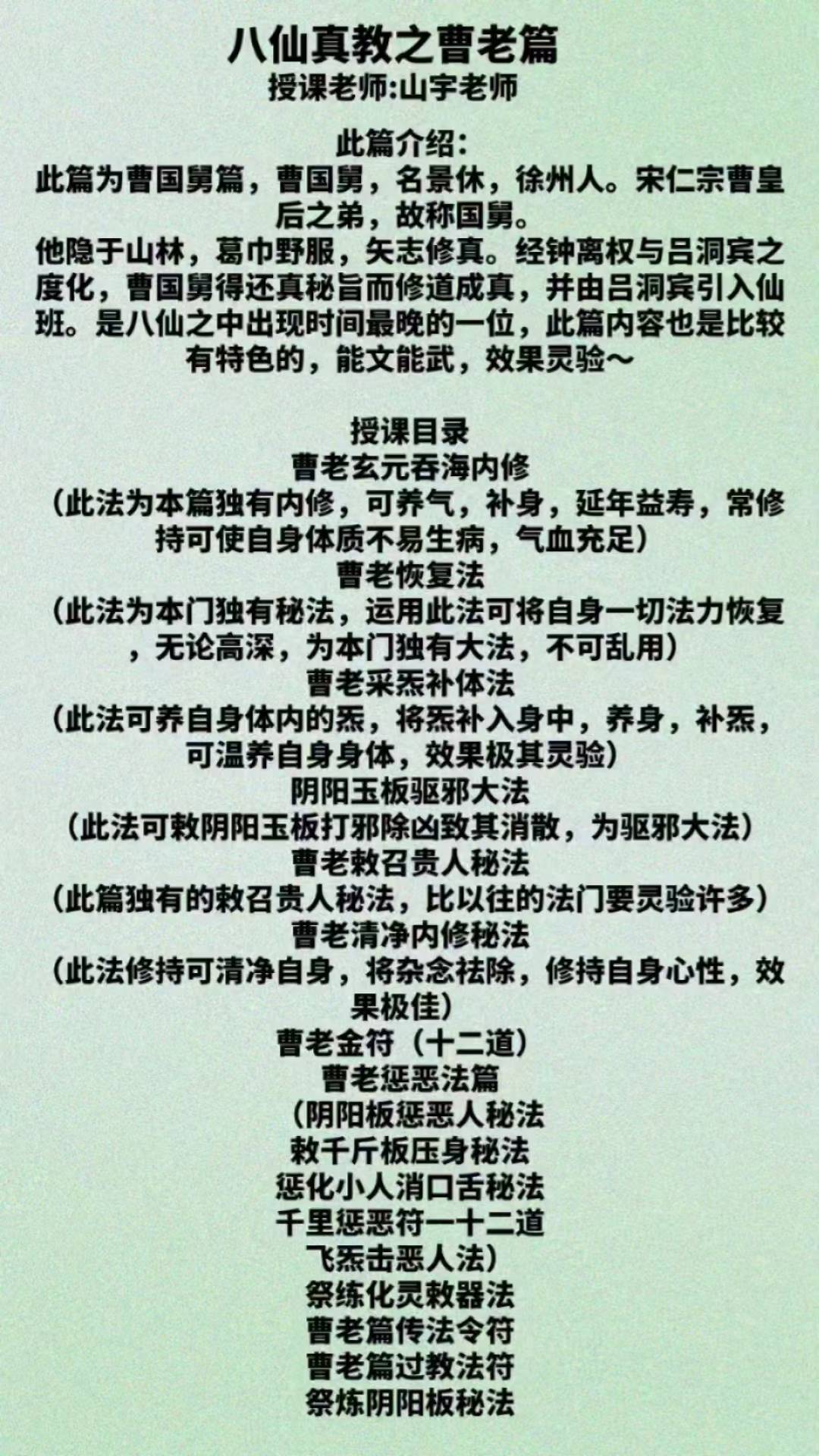 山宇老师八仙之曹老视频回放加课件