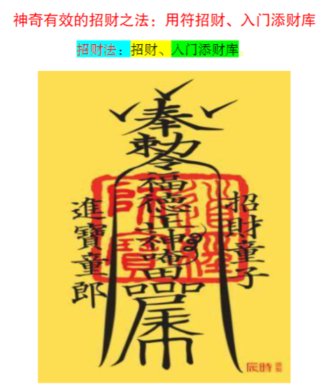 神奇有效的招财之符法:用符招财、入门添财库招财法:招财、入门添财库